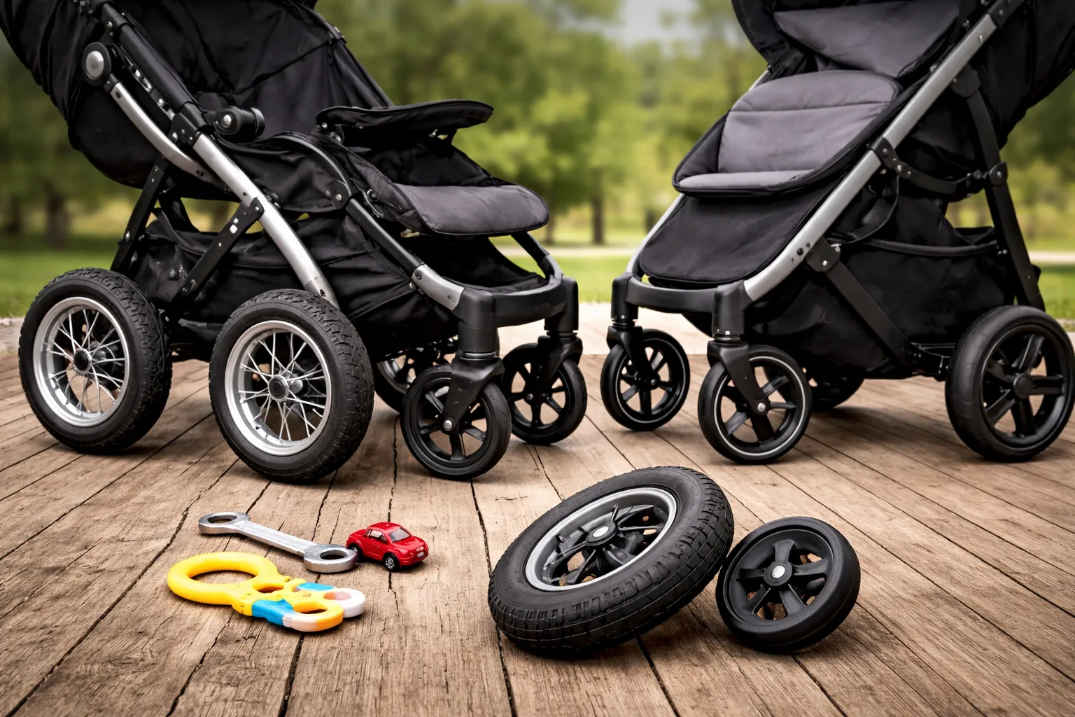 Материал и размер колес это еще не вся картина. Нужно смотреть, как устроены оси, насколько надежно колеса крепятся, не люфтят ли они, легко ли снимаются для чистки, есть ли подшипники и как работает тормоз. Иногда внешне приличная коляска начинает скрипеть и разбалтываться именно из-за слабых креплений. И тогда разговор уже не о том, какие колеса лучше, а о том, почему все это так быстро устало от жизни.